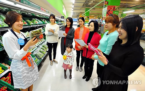 | △ 홈플러스, 문화센터 콜라보 강좌 (서울=연합뉴스) 4일 서울 홈플러스 영등포점에서 문화센터 수강생들이 채소 소믈리에에게 제철 봄나물 고르는 법에 대해 설명을 듣고 있다. 홈플러스 문화센터는 매장과 강의실을 연계한 '콜라보 강좌' 400여 개를 연다. 등록과 문의는 각 점포 문화센터와 홈페이지(http://school.homeplus.co.kr)에서 하면 된다. 2015.3.4 << 홈플러스 제공 >> photo@yna.co.kr |