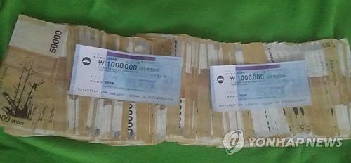 | △ 고교생 포함 10대 스포츠 도박 사이트 운영 일당 검거 (구리=연합뉴스) 4일 경기도 구리시에서 인터넷 스포츠 도박 사이트를 운영하며 12억을 챙긴 10대 일당이 검거됐다. 사진은 이들이 도박 사이트 운영으로 챙긴 돈을 찾아 기념으로 찍은 것을 경찰이 입수한것.2015.3.4<<구리경찰서>> jhch793@yna.co.kr |