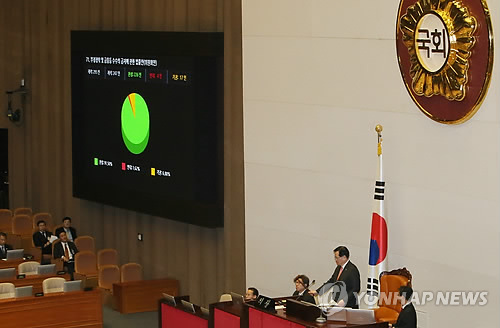 | △ '김영란법' 국회 본회의 통과 (서울=연합뉴스) 진성철 기자 = 정의화 국회의장이 지난 3일 국회 본회의에서 '김영란법'(부정청탁 및 금품 등 수수 금지에 관한 법률) 제정안을 가결하고 있다. |