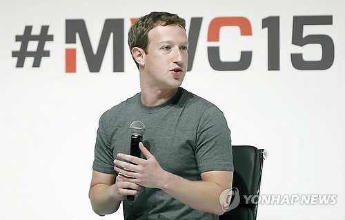| △ (EPA=연합뉴스) 2일(현지시간) 스페인 바르셀로나에서 열린 모바일 월드 콩그레스(MWC) 2015에 참석한 페이스북 공동창립자 마크 저커버그. |