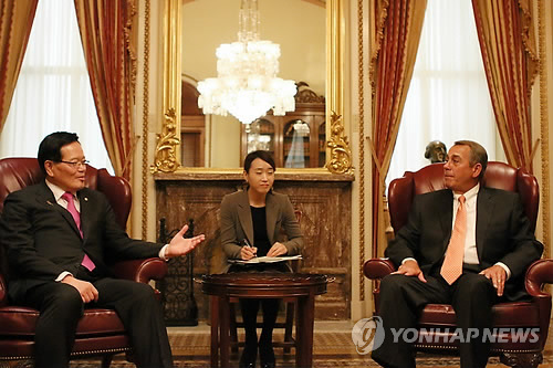 정 의장은 존 베이너(공화·오하이오) 하원의장 면담, 에드 로이스(공화·캘리포니아) 하원 외교위원장 오찬 회동에서도 이 같은 뜻을 밝혔다.