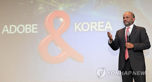 (서울=연합뉴스) 김은경 기자 = 글로벌 소프트웨어 기업 어도비의 샨타누 나라옌 최고경영자(CEO)가 한국이 기술을 선도하는 나라인 만큼 어도비에 '기회의 땅'이라는 평가를 내놨다.