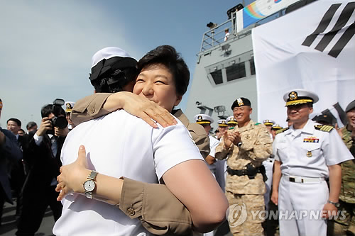 朴대통령, 파병함정 첫승선…청해·아크부대 격려