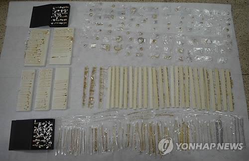 | △ 물품보관함에서 발견된 억대의 귀금속 (군포=연합뉴스) 서울 동대문의 한 의류 쇼핑몰 지하 물품보관함에서 3개월 넘게 주인이 찾아가지 않은 2억원 상당의 귀금속 767점. 경찰은 귀금속 여주인의 신원을 파악했지만, 행방불명 상태인 것이 확인되자 강력사건으로 보고 대대적인 수사에 착수했다. 그러나 해당 여성은 이혼 후 대인기피증 때문에 가족들과 연락을 끊고 지내온 것으로 드러났다.2015.3.8<<군포서 제공>> goals@yna.co.kr |