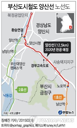 (서울=연합뉴스) 김윤구 기자 = 부산과 경남 양산을 경전철로 잇는 양산선 건설사업이 내년부터 시작된다.