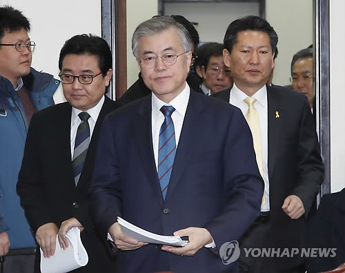 | △ 최고위원회의 참석하는 문재인 대표 (서울=연합뉴스) 이상학 기자 = 새정치민주연합 문재인 대표가 9일 오전 국회에서 열린 최고위원회의에 참석하고 있다. |