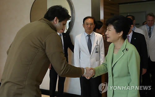 (서울=연합뉴스) 신지홍 정윤섭 기자 = 박근혜 대통령은 9일 오전 중동 4개국 순방을 마치고 성남 서울공항을 통해 귀국한 직후 곧바로 흉기 습격을 당해 서울 신촌세브란스 병원에 입원중인 마크 리퍼트 주한 미국대사를 병문안했다.