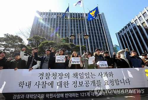 학생들은 기자회견이 끝난 뒤 전국 121개 대학 소속 학교 구성원 1천300여명의 서명이 담긴 강 청장에게 보내는 항의서한을 경찰청 민원실을 통해 전달했다.