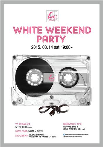 다이닝 바 루에선 14일 오후 7시부터 새벽 2시까지 '화이트데이 위크엔드 파티'를 한다. 힙합 음악을 들으며 화이트데이 파티를 즐길 수 있으며 루의 스페셜 메뉴와 와인, 칵테일이 포함된 4가지 화이트데이 세트메뉴를 12만원에 내놓는다.