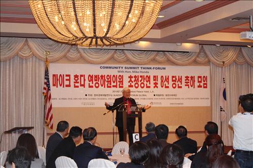 혼다 의원은 이날 오후 미국 로스앤젤레스 시내 한 호텔에서 한미경제개발연구소(KAEDC) 주최로 열린 '연방하원 8선 당선 축하 초청 강연회'에서 "아베 총리의 미국 방문은 환영하지만 과거사 반성없는 의회 연설은 반대한다"면서 이같이 밝혔다.
