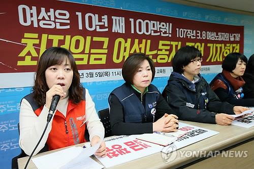 "男정규직 100원 벌때 女비정규직은 36원 받아"