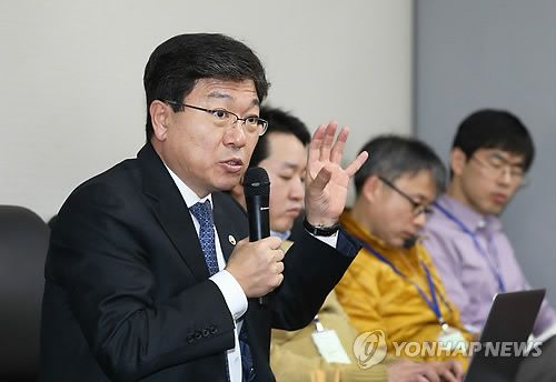 | △ 윤상직 장관, 중동4개국 순방 결과 관련 브리핑 (서울=연합뉴스) 윤상직 산업통상자원부 장관이 11일 정부세종청사 산업부 기자실에서 출입기자단에게 중동 4개국 순방 결과 관련 브리핑을 하고 있다. (산업통상자원부 제공) |