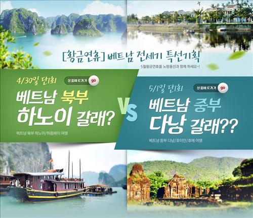(서울=연합뉴스) 전준상 기자 = 직판여행사인 노랑풍선은 5월 황금연휴에 베트남 중부와 북부를 선택해 여행할 수 있는 기획전을 선보인다고 12일 밝혔다.