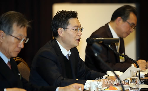 | △ 강연하는 황준국 외교부 본부장 (서울=연합뉴스) 최재구 기자 = 6자회담 우리측 수석대표인 황준국 외교부 한반도평화교섭본부장이 12일 오전 서울 반얀트리호텔에서 열린 한반도 경제포럼에서 강연하고 있다. 2015.3.12 jjaeck9@yna.co.kr |