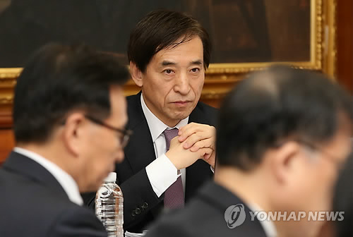 | △ 생각에 잠긴 이주열 한국은행 총재 (서울=연합뉴스) 서명곤 기자 = 이주열 한국은행 총재가 12일 오전 서울 중구 남대문로 한국은행 본점에서 열린 금융통화위원회 회의에서 생각에 잠겨있다. 2015.3.12 seephoto@yna.co.kr |