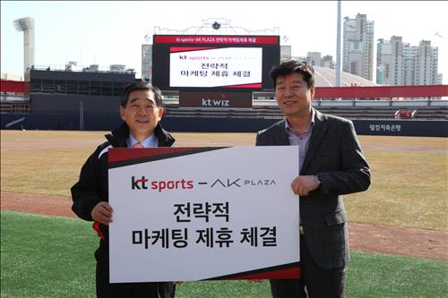 (서울=연합뉴스) 최이락 기자 = AK플라자 수원점은 수원을 연고로 한 프로야구 신생팀 KT위즈 야구단과 마케팅 제휴 협약을 체결했다고 12일 밝혔다.