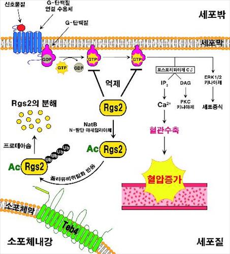 Rgs2는 G단백질 신호전달 과정을 차단해 혈압 감소를 유도하기 때문에 세포 내 Rgs2 수치가 혈압조절에 중요하지만 이를 결정하는 Rgs2의 분해과정은 지금까지 밝혀지지 않았다.