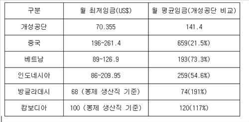또 북·중 경제특구가 있는 나선 지역 근로자의 임금이 월 100달러, 북한 내 외국기업 임금이 60~80유로 수준인 것으로 알려진 것에 비하면 북한 다른 지역보다도 개성공단 임금이 상대적으로 후하다는 것이다.