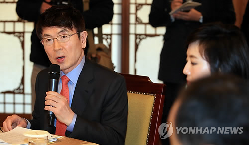 | △ 현정택 정책조정수석 당정청 모두 발언 (서울=연합뉴스) 홍해인 기자 = 현정택 청와대 정책조정수석(왼쪽)이 15일 오후 서울 삼청동 총리 공관에서 열린 제2차 당정청 정책조정협의회에서 모두 발언을 하고 있다. |