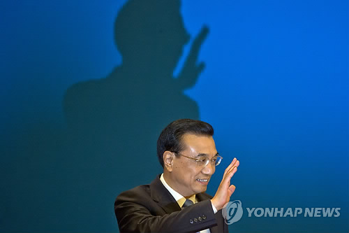 | △ (AP=연합뉴스) 15일(현지시간) 중국 베이징(北京) 인민대회당의 전국인민대표대회(전인대) 폐막식 직후 리커창(李克强) 중국 총리가 내외신 기자회견장에 도착, 손을 흔들고 있다. |
