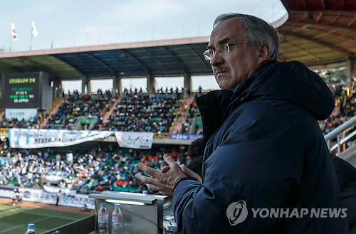 15일 포항 스틸러스와 울산 현대의 프로축구 K리그 클래식 2라운드가 치러진 포항 스틸야드 경기 감독관석에는 낯익은 인물이 앉아 있었다.