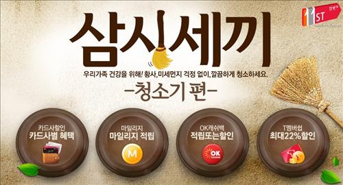 (서울=연합뉴스) 김아람 기자 = 오픈마켓 11번가는 봄 대청소 시즌을 맞아 인기 청소기를 최대 40% 할인하는 '삼시세끼 청소기 기획전'을 연다고 16일 밝혔다.