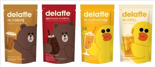 올해 운영하는 델라페 아이스 음료 17종의 제품 디자인과 컵홀더에 브라운, 코니, 샐리, 레너드, 제임스 등 라인프렌즈의 5가지 캐릭터를 입혔다.