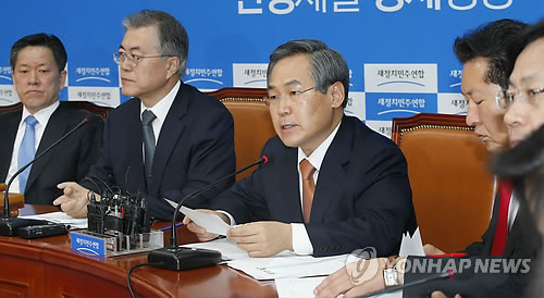 | △ 현안 발언하는 우윤근 원내대표 (서울=연합뉴스) 이상학 기자 = 새정치민주연합 우윤근 원내대표가 16일 오전 국회에서 열린 최고위원회의에서 현안 발언을 하고 있다. |