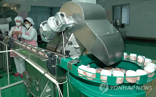 | △ 평양 화장품공장의 종업원들 (평양 조선중앙통신=연합뉴스) 평양 화장품공장의 종업원들이 공장에서 생산된 화장품을 바라보는 모습을 조선중앙통신이 15일 보도했다. 통신은 이 사진을 9일 촬영했다고 밝혔다. 2015.2.15 photo@yna.co.kr |