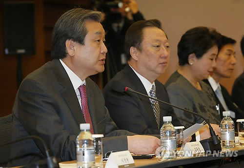 김 대표는 16일 중구 대한상공회의소에서 박용만 상의 회장 및 현정은 현대그룹 회장, 정용진 신세계 부회장 등 재계 인사들과 간담회를 하고 "우리 경제가 많이 어려운데 무엇보다 걱정되는 것이 가계와 기업 등 경제 주체들이 여러 규제와 제도 미흡으로 투자 열정을 잃어가고 있는 것"이라고 말했다.