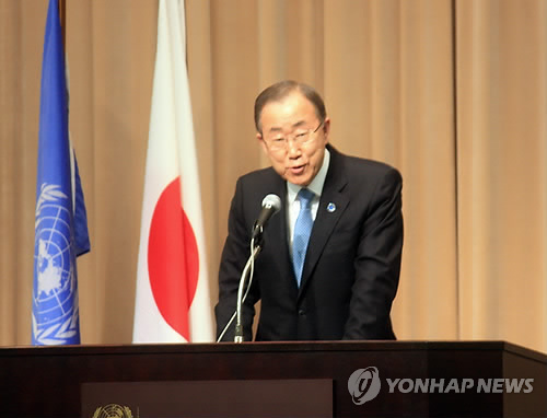 반 총장은 도쿄 유엔대학에서 열린 유엔 창설 70주년 기념 심포지엄 연설을 통해 한중일 세 나라가 정부간 대화를 통해 "진정한 화해와 조화, 번영의 토대를 만들어야 한다"며 이같이 말했다.