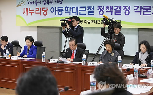 (서울=연합뉴스) 홍정규 기자 = 정부와 새누리당 아동학대근절특별위원회는 17일 회의를 열어 2월 임시국회에서 부결된 영유아보육법 개정안과 관련, 어린이집 폐쇄회로(CC)TV 설치에 사생활 보호 단서를 달아 4월 임시국회에서 재추진하기로 했다.