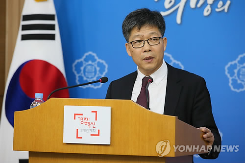 | △ '대한민국 정부상징 새로 만듭니다' (서울=연합뉴스) 박지호 기자 = 원용기 문화체육관광부 문화예술정책실장이 17일 오전 서울 외교부청사 브리핑실에서 '대한민국 정부상징(GI)'의 개발과 적용에 관한 계획을 발표하고 있다. |