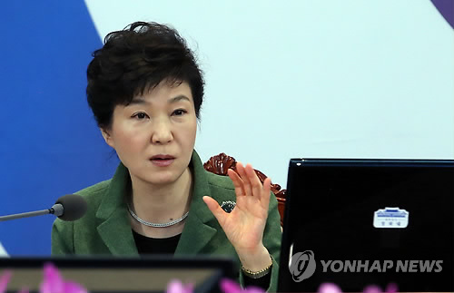 | △ 국무회의서 발언하는 박 대통령 (서울=연합뉴스) 도광환 기자 = 박근혜 대통령이 17일 오전 청와대 위민관 영상국무회의실에서 열린 국무회의에서 발언하고 있다. |