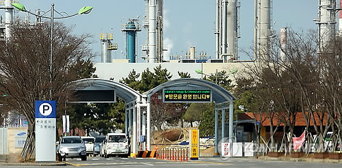 | △ 삼성토탈 서산 공장 전경 (서산=연합뉴스) 26일 한화그룹이 삼성토탈을 인수할 것으로 알려진 가운데 충남 서산시 대산읍 삼성토탈 공장 정문으로 차량이 출입하고 있다.2014.11.26 kjunho@yna.co.kr |