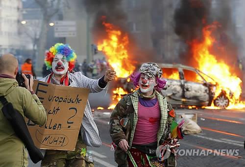 새청사 개관 ECB서 1만명 긴축반대 시위…폭력사태도
