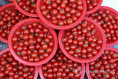 지난달 일반토마토 5㎏ 평균 도매가격은 1만6천800원으로 31% 떨어졌고, 원형 방울 토마토와 대추형 방울 토마토는 각각 25%, 30% 하락했다.