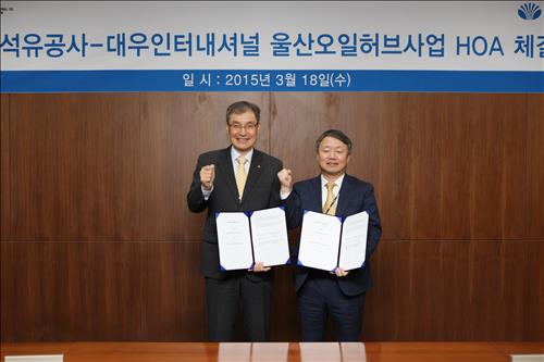 (서울=연합뉴스) 김지훈 기자 = 한국석유공사는 19일 대우인터내셔널[047050]이 동북아 오일허브 울산북항사업에 추가 주주로 참여하기로 하고 전날 울산에서 기본합의서(HOA)를 맺었다고 밝혔다.