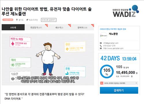 (서울=연합뉴스) 김은경 기자 = 헬스케어 스타트업 제노플랜이 크라우드펀딩을 통해 7일 만에 1천만원을 모았다.