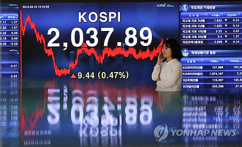 이날 코스피지수는 전날보다 9.44포인트(0.47%) 오른 2,037.89로 마감했다.