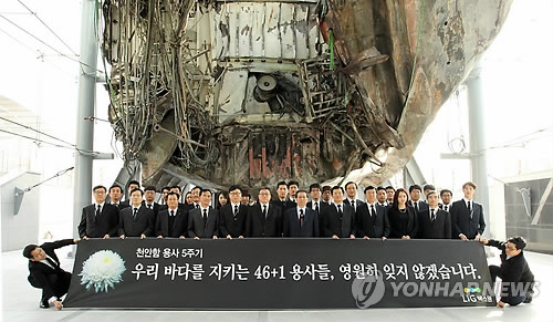 (서울=연합뉴스) 김귀근 기자 = 방산업체인 LIG넥스원은 천안함 순직 용사 5주기를 앞두고 19일 이효구 대표이사 등 임직원 50명이 참석한 가운데 해군 2함대사령부의 '서해수호관' 등에서 추모행사를 했다고 밝혔다.