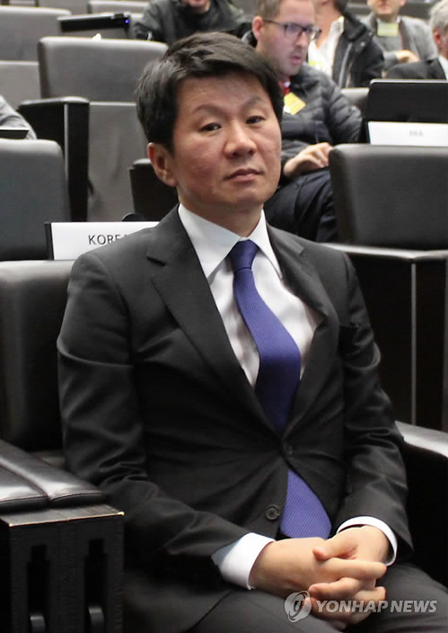 | △ 정몽규 회장 "아쉽지만 여자축구 활성화 위해 노력할 터" (취리히=연합뉴스) 류현성 특파원 = 정몽규 대한축구협회장은 19일(현지시간) "2019년 여자 월드컵 개최권을 프랑스에 놓치게 돼 매우 아쉽다"면서 "여자 축구 저변 확대를 위해 더욱 노력하겠다"고 말했다. 사진은 정몽규 회장이 FIFA 회의장에서 2019년 여자 월드컵 개최국 선정 발표를 기다리고 있는 모습. 2015.3.20 rhew@yna.co.kr |