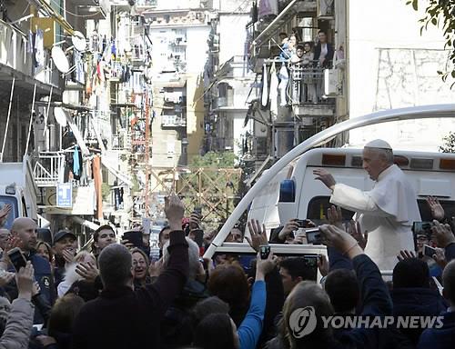 (제네바=연합뉴스) 류현성 특파원 = 프란치스코 교황은 21일(현지시간) 나폴리 사람들에게 돈을 쉽게 벌거나 정직하지 못한 수입의 유혹에 넘어가지 말고 범죄조직에 굳건하게 맞서달라고 당부했다.