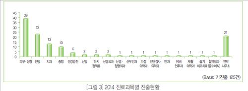 지역별로 진출한 종목도 차이가 있어 중국에 진출한 의료기관의 3분의 2 가량이 피부·성형인데 반해 미국에는 한방(54%)과 치과(29%)가 대부분이었다.