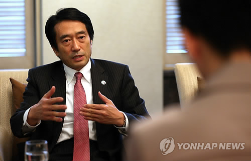 | △ 인터뷰하는 가와무라 야스히사 日외무보도관 (서울=연합뉴스) 신준희 기자 = 일본 외무성의 대변인 격인 가와무라 야스히사(川村泰久) 일본 외무성 외무보도관이 서울에서 연합뉴스 기자와 인터뷰를 하며 질문에 답하고 있다. 2015.3.23 hama@yna.co.kr |