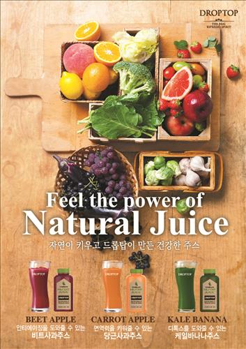 비트사과주스, 당근사과주스, 케일바나나주스 등 3종으로 출시되며, 드롭탑 주요 매장에서 31일부터 판매된다.