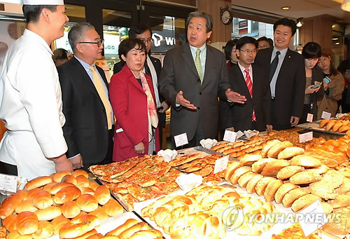 | △ 대전 명소 '성심당' 찾은 김무성 대표 (대전=연합뉴스) 이재림 기자 = 새누리당 김무성 대표가 25일 오후 대전 중구 '성심당'을 찾아 직원과 이야기를 나누고 있다. |