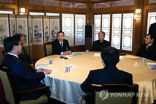 (서울=연합뉴스) 박성민 기자 = 이완구 국무총리는 26일 삼청동 총리공관에서 한국노총 김동만 위원장, 한국경영자총협회(경총) 박병원 회장을 초청, 오찬을 함께하며 이달 말까지 노사정 대타협을 이뤄줄 것을 요청했다.