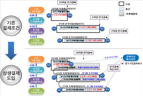 정부는 2·3차 이하 협력사들이 상생결제시스템을 통해 채권할인 비용을 평균 50% 절감할 수 있을 것으로 보고 있다.