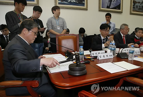 | △ 공무원연금 개혁 국민대타협기구 연금개혁 분과위 (서울=연합뉴스) 이상학 기자 = 26일 오후 국회에서 열린 공무원연금 개혁을 위한 국민대타협기구 연금개혁 분과위에서 조원진 공동위원장이 의사봉을 두드리고 있다. 2015.3.26 leesh@yna.co.kr |